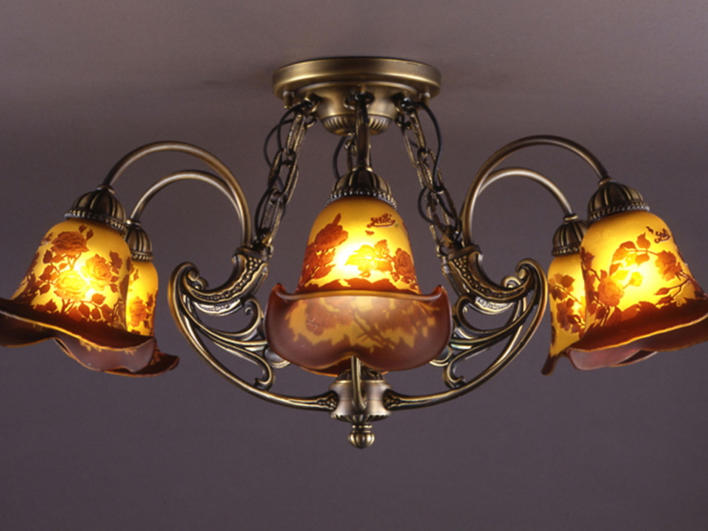 - イタリア製ガラスにアカンサスの花をあしらった6灯シーリングシャンデリア照明 イタリア製