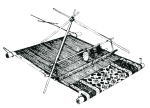 移動を繰り返す遊牧民族によって使用されている織機。経糸を張った前後の横材をを支える柱の代わりに地面に木片を打ち込んで固定し、緯糸は三脚状に組まれた棒からつるされます。組立てが簡単で、移動の時もラクダの背や車の荷台に載せられますが、大きな絨毯には適さないため、つくられる絨毯のサイズは、一辺の長さが最大でも120cm程度までとなっています。