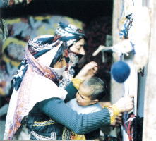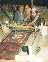 | 水平織機でキリムを織る遊牧民 | 垂直織機でペルシャ絨毯を織る織工 |