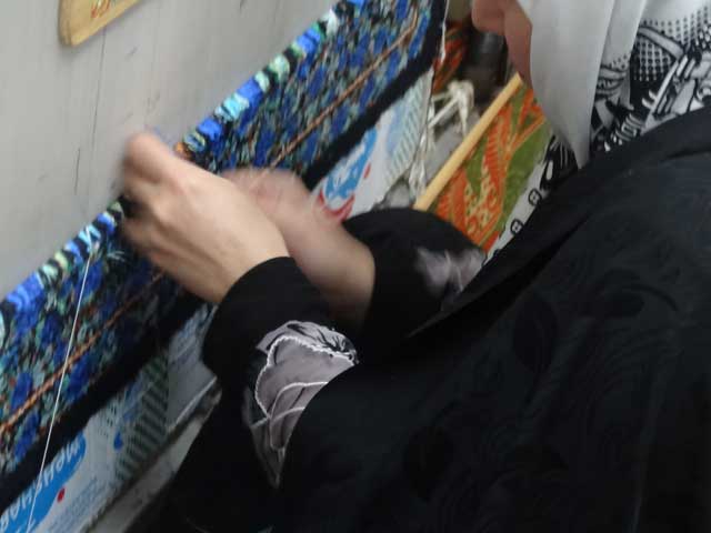 定住した遊牧民が使う垂直織機