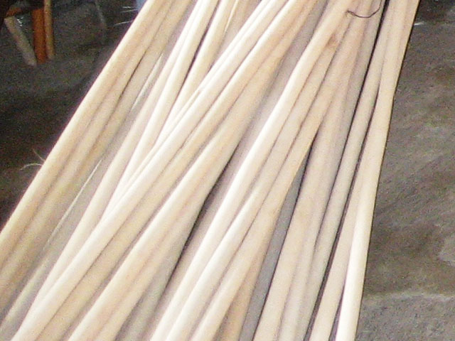 大別して太いものは、家具のフレーム材として使用され、細かいものは、これを裂いて皮籐(ピール)と芯籐(コア)をとり、編んだり、巻いたりする材料になるのです。