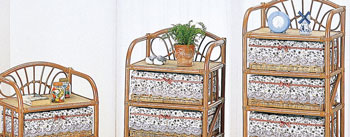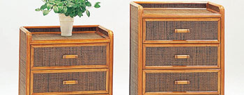 籐チェスト 籐(ラタン)と木製のコンビネーション。引出内装は木製で組まれ、しっかりとした構造になっています。チェスト表面は、籐で編み込まれ、籐家具の美しさとやさしさを表現しています。 |