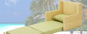 籐ソファーベッド 繊細な曲線が織りなすしなやかな曲線美の中に丈夫さを兼ね備えた籐(ラタン)製のソファーベッドは、ソファーに機能を追加しました。 |