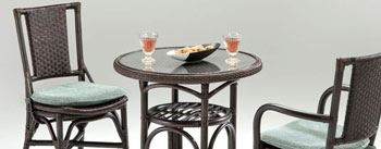 籐ラウンジ3点セット ラインジ3点セットは、ことばの通り、ホテルラウンジやホテルのお部屋の窓際にあるような、ゆったりしたかけ心地のアームチェアに小さなテーブルが付いたセット。 |