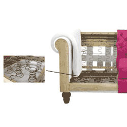 この最高級なスプリングシステムのおかげで、すわり心地の良さ、長い間変形しないシェープ、そして、重さを偏らないでシート全体に分散して受け止められる品質を出しております。