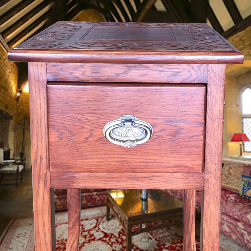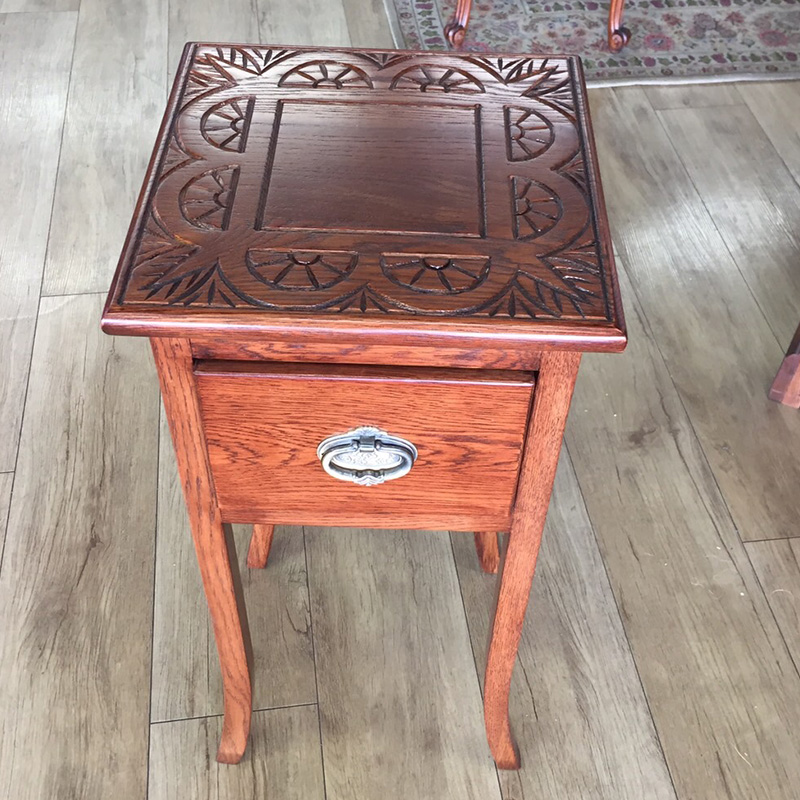 天板の彫刻が素敵なアンティーク調スリムテーブル 輸入家具 【送料無料】