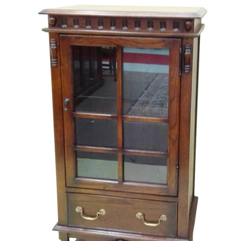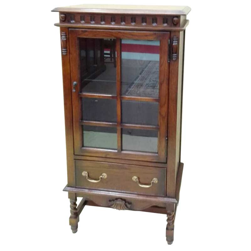 下に引き出しが、一つ付いたアンティーク調キャビネットです。ツイストレッグを使用した、英国の伝統的なデザインです。