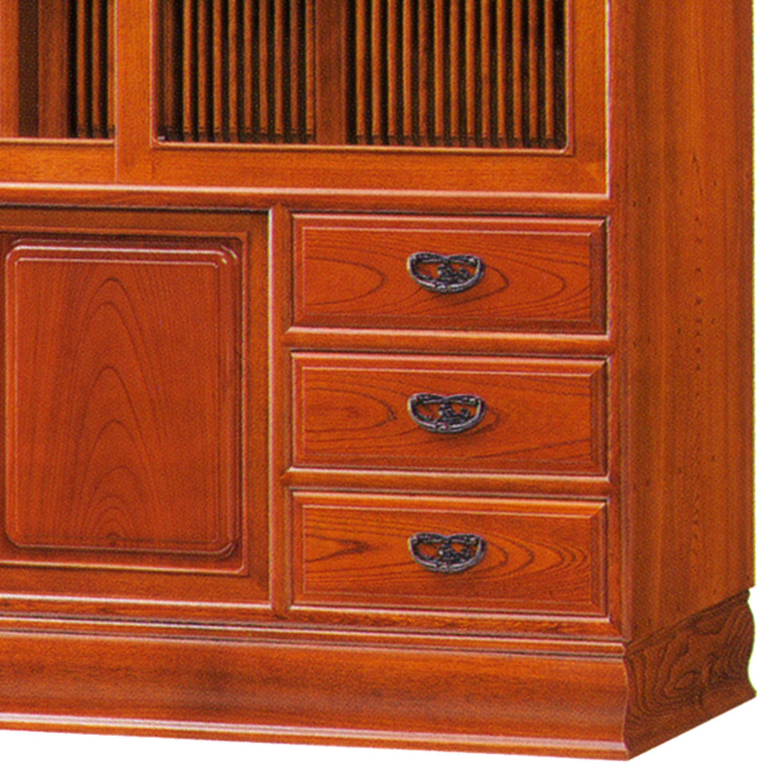 日本の伝統的な和茶棚。匠の技が光る剣先造り仕様の最高級品です。こちらの和茶棚は、前面にケヤキの無垢材を、側面は、ケヤキ同等の栓材の無垢を使用しています。この贅沢な和茶棚をおすすめいたします。