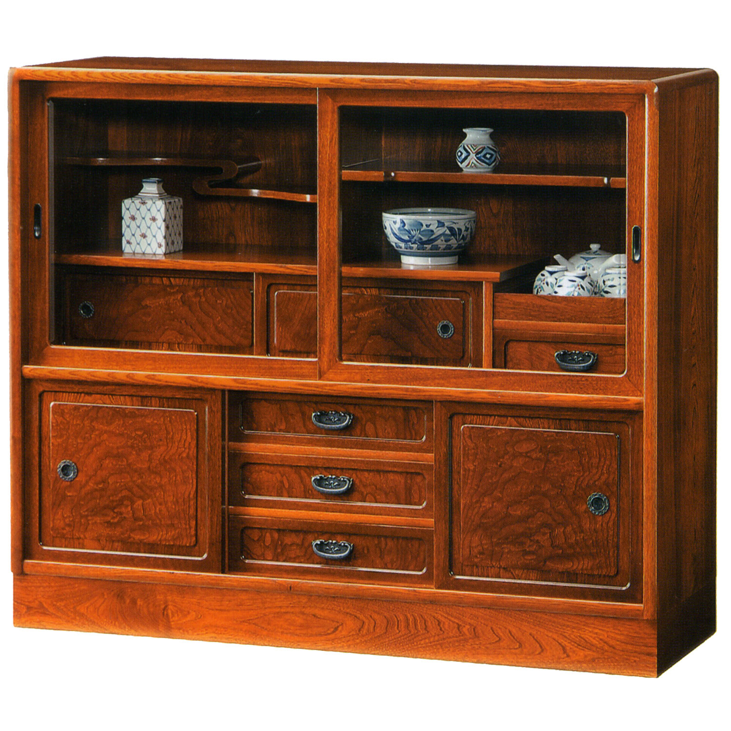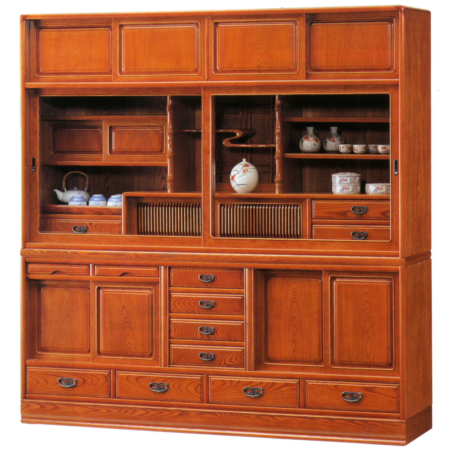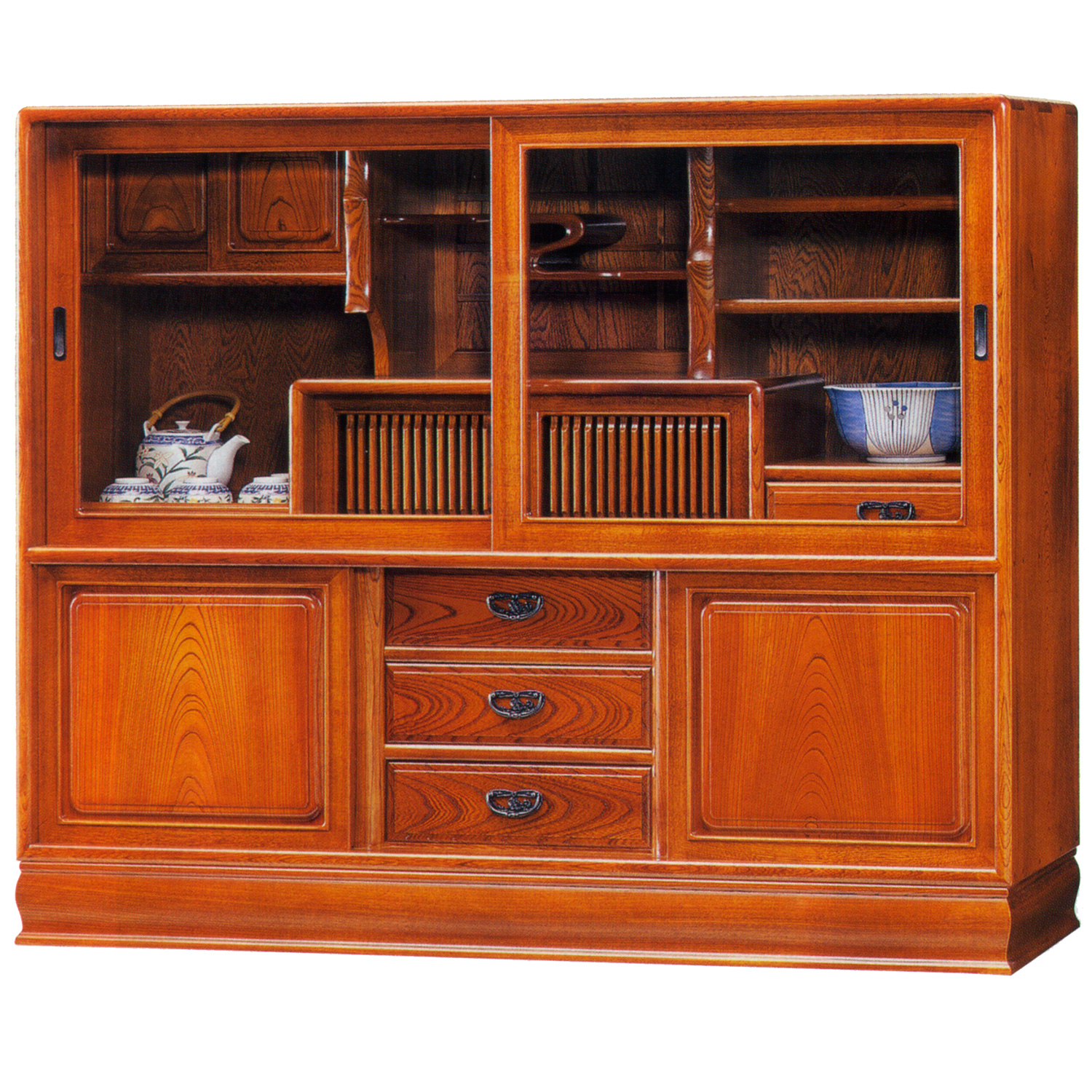 日本の伝統的な和茶棚。匠の技が光る剣先造り仕様の最高級品です。こちらの和茶棚剣山は、前面にケヤキの無垢材を、側面は、ケヤキ同等の栓材の無垢を使用しています。この贅沢な和茶棚をおすすめいたします。