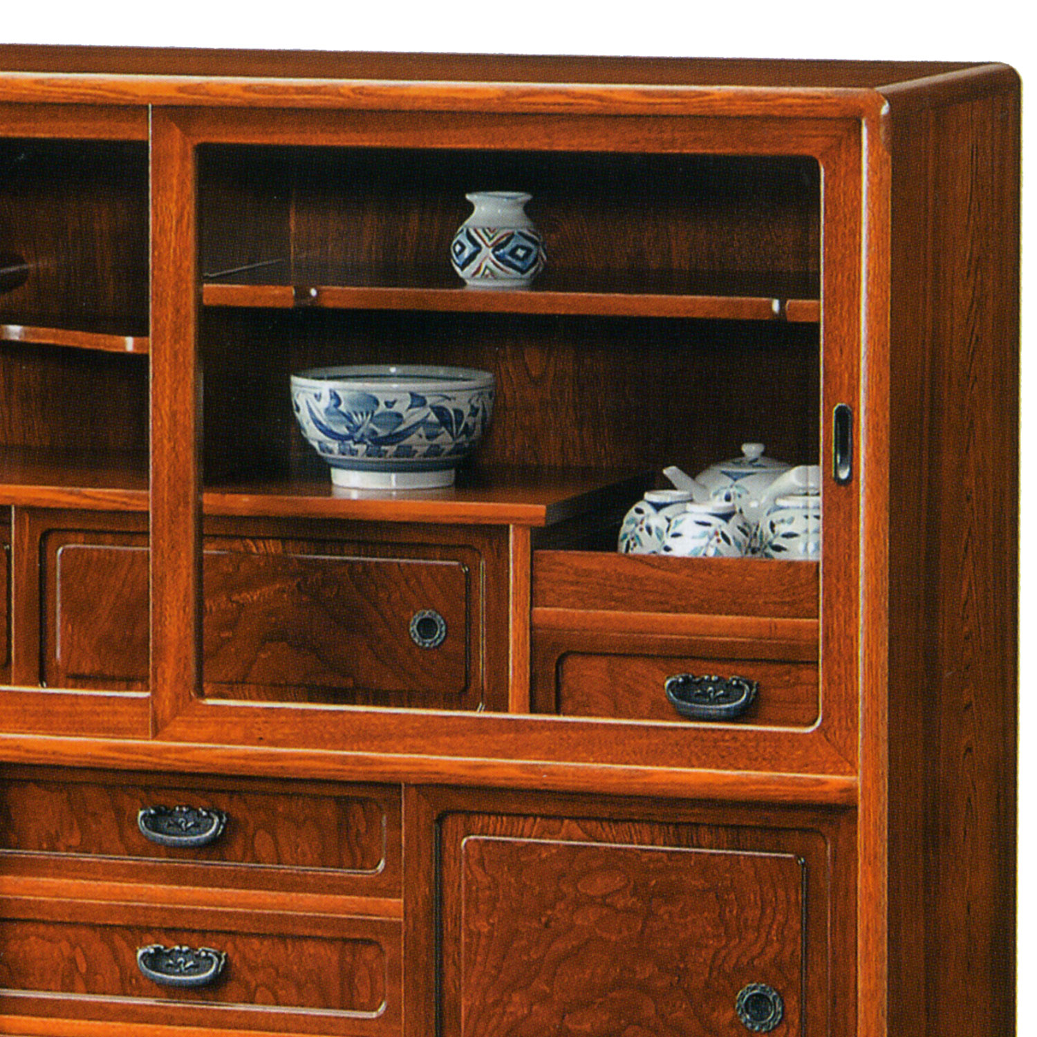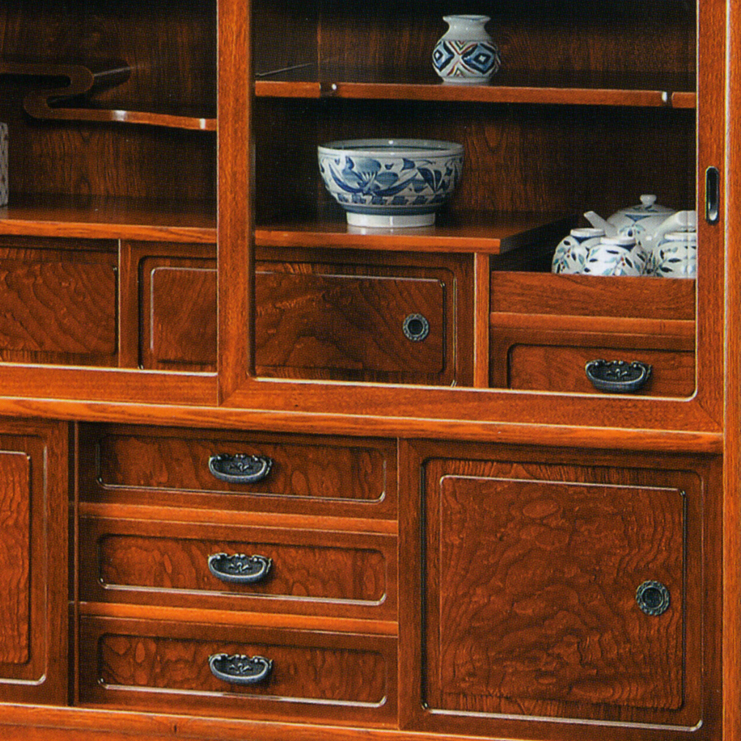 日本の伝統的な和茶棚。ケヤキ材の綺麗な木目を生かし、匠の技が、光る逸品です。デザインもバランスのとれた素敵なデザイン。こちらの和茶棚は、ケヤキの天然杢を使用したリーズナブルな価格と綺麗な木目で人気です。日本伝統の和茶箪笥。