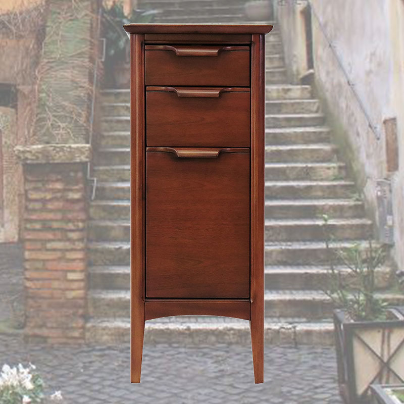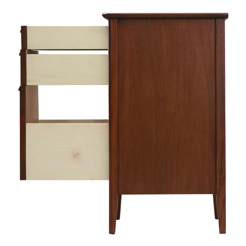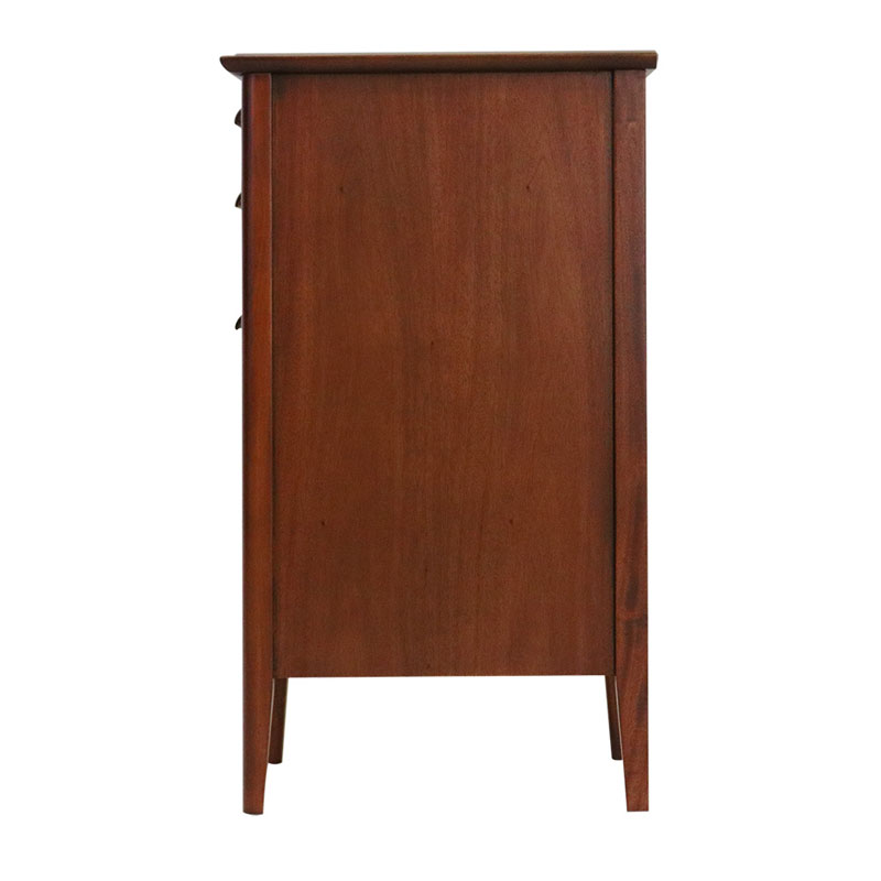 ヨーロピアンミッドセンチュリースタイルの30cm幅スリムチェスト。マホガニー材にヴィンテージ感のあるミディアムブラウンのセミマッド塗装を施し、北欧テイストを感じさせ、ブルックリンスタイルにも合わせやすいデザインにしています。