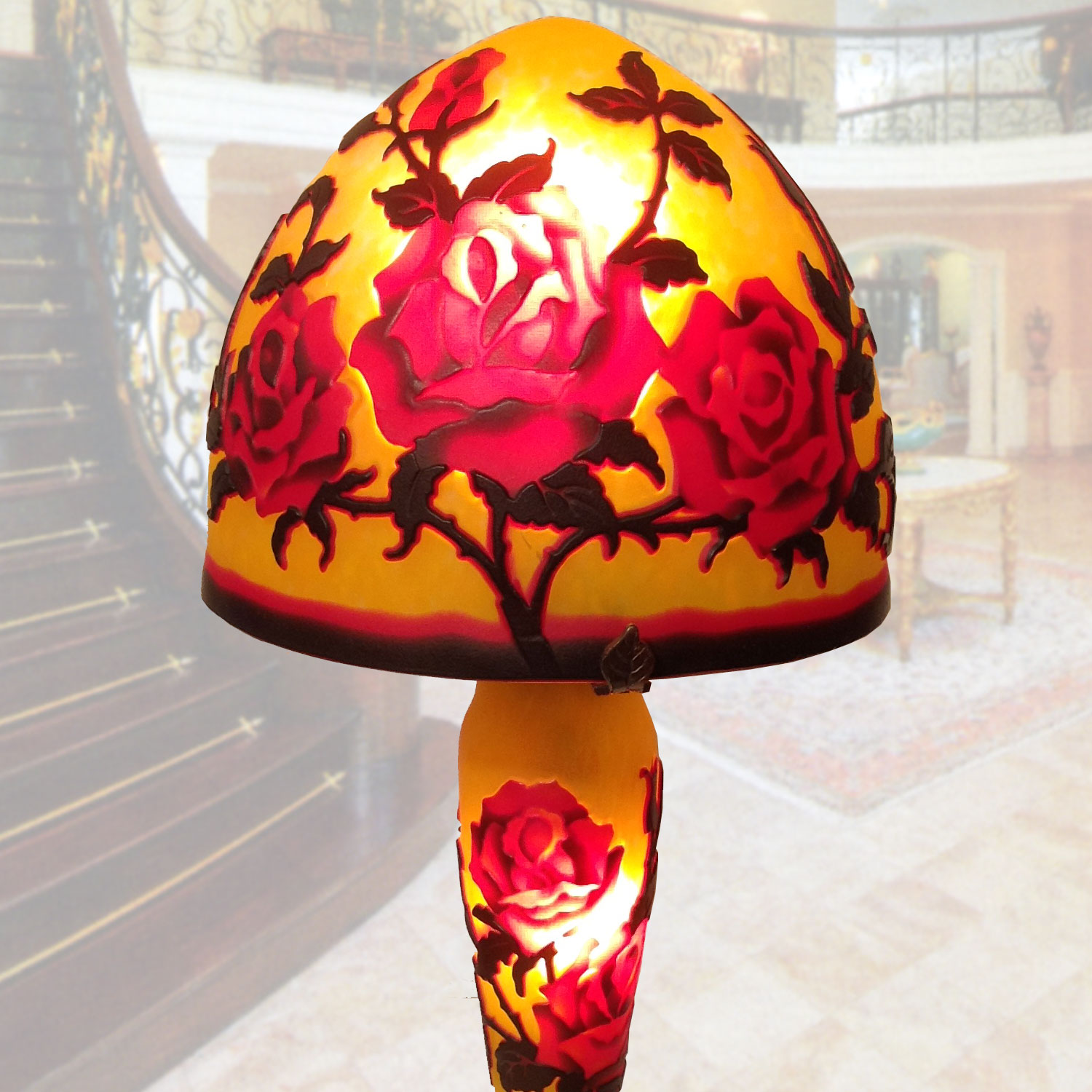 KDF-KS-603は、レッドローズをモチーフに手造りされたガレ風きのこ型テーブルランプです。※通常のお届けは、10日以内ですが、輸入品のため国内に在庫の無い場合は、納期がかかる場合がございます。予めご了承ください。納期がかかる場合は、メールもしくは、お電話にてご連絡いたします。