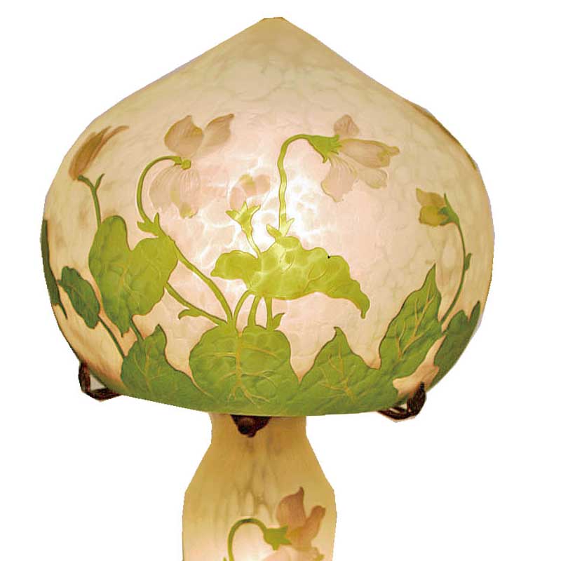 すみれをモチーフに手造りされたガレ風きのこ型テーブルランプです。すみれの花でやさしさを演出したすてきなランプです。※通常のお届けは、10日以内ですが、輸入品のため国内に在庫の無い場合は、納期がかかる場合がございます。予めご了承ください。納期がかかる場合は、メールもしくは、お電話にてご連絡いたします。