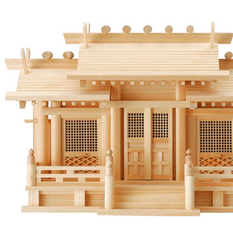 岐阜県産東濃ひのきを使用し作られた格子付き屋根違い、三社タイプの高級神棚です。