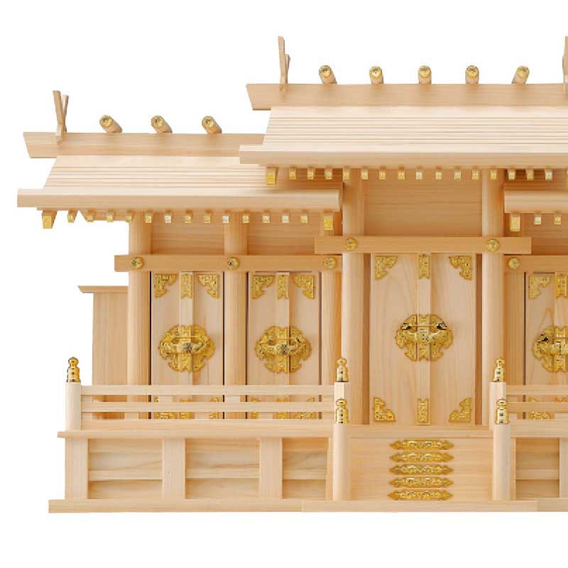 岐阜県産東濃ひのきを使用し作られた屋根違い五社タイプの高級神棚。