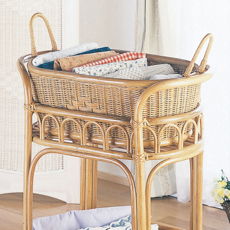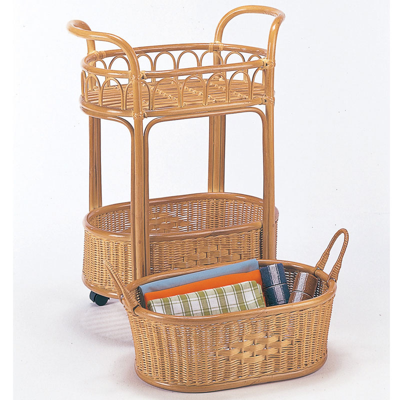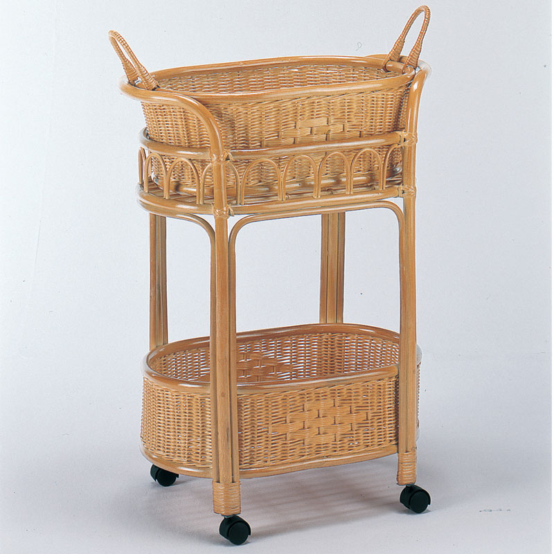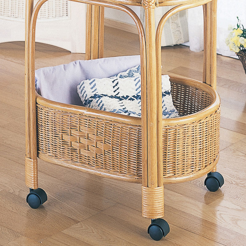 (沖縄、北海道、離島等一部地域を除く) 洗濯物が出し入れしやすいワゴンスタイルの籐製のランドリー。