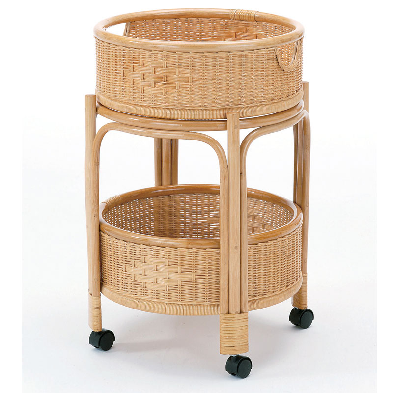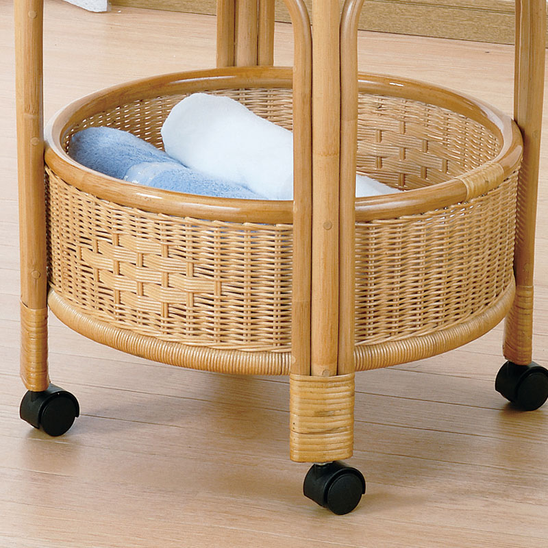 丸い形がキュートでファンシーな籐製ランドリーです。通気のよいウィッカー編み。