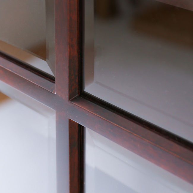 気になる素材は「カバ」。それも北海道産にこだわりました。均等で緻密な木目と質感はまるでシルクのような肌ざわりで、高品質な民芸家具にしっくりと馴染みます。また重硬で丈夫な木質は、開閉を繰り返す食器棚に最適です。塗装は汚れや傷から家具を守る上質なウレタンを使用し、赤みを際立たせる「北海カラー」というオリジナルの色で仕上げました。経年によりツヤはさらに増し、深い飴色に輝きます。