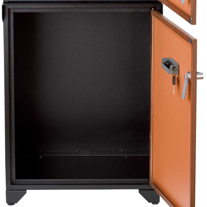 全体は、前面扉が、ウォールナットの無垢目、側面他は、ブラック色でスタイリッシュなフォルム。