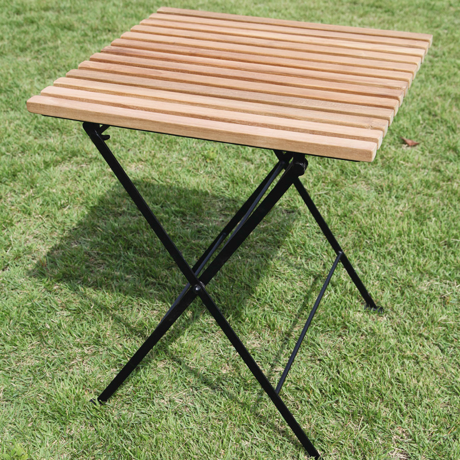折り畳みアイアンチークテーブル3点セットは、折り畳めて便利なアイアンとチークを使用したガーデンファニチャー(家具)のテーブルセットです。