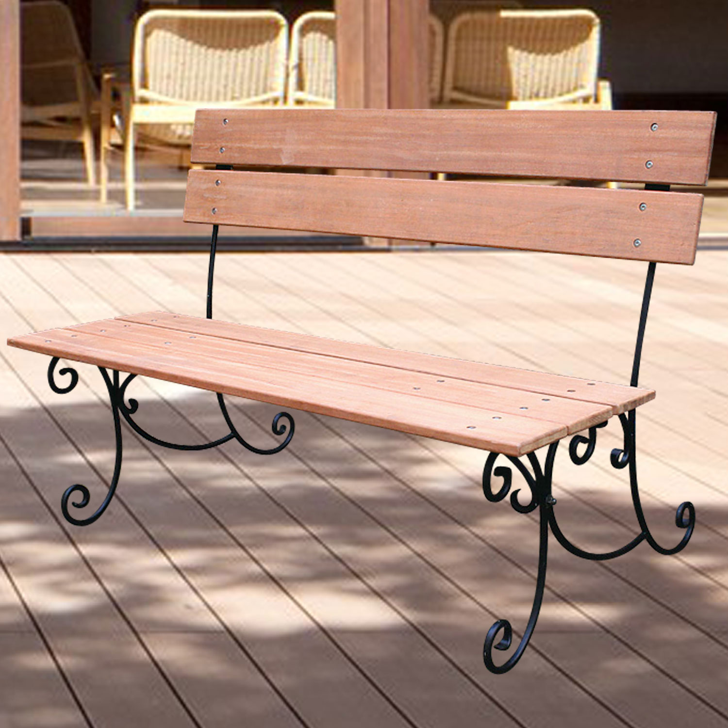 スクロールベンチJB-34209おしゃれな脚型をしたチーク材とロートアイアンを使用したガーデンファニチャー(家具)のベンチです。
