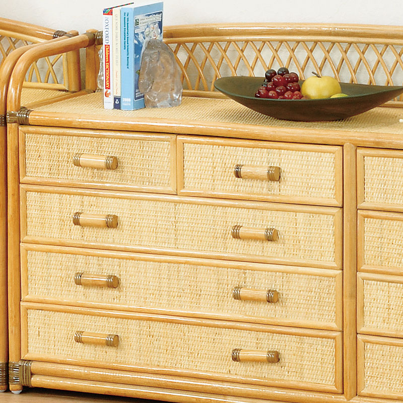 引き出し内部を木製仕様にしたラタン(籐)製超ワイドな4段チェストです。手の込んだ飾り編みのチェストは、お部屋に上位質感を演出します。