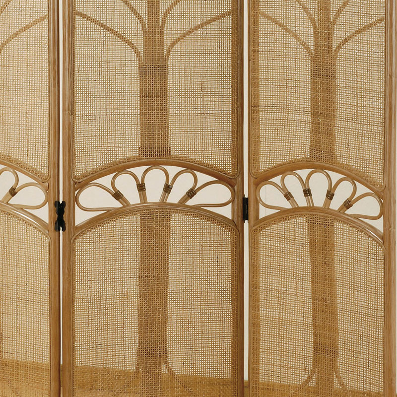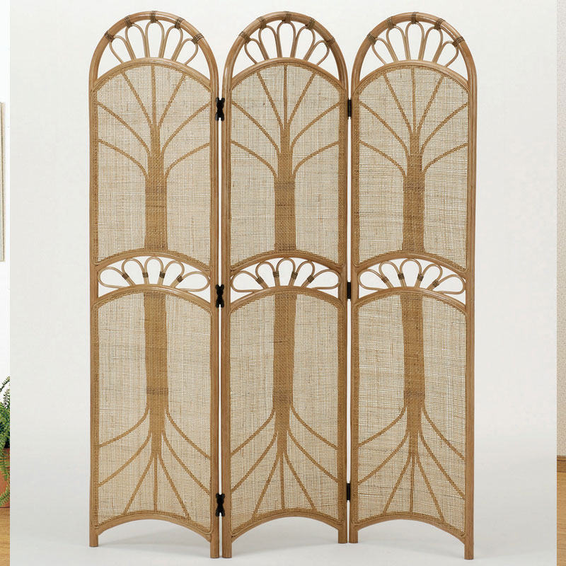 手作り感と素朴な風合いが魅力のラタン(籐)3連スクリーンです。ナチュラルな味わいが、リゾート気分を盛り上げます。