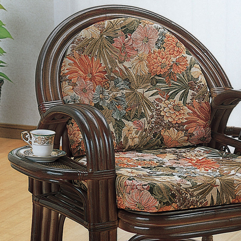 サイドテーブルとマガジンラックが付いたラタンアームチェア ラタン・籐家具