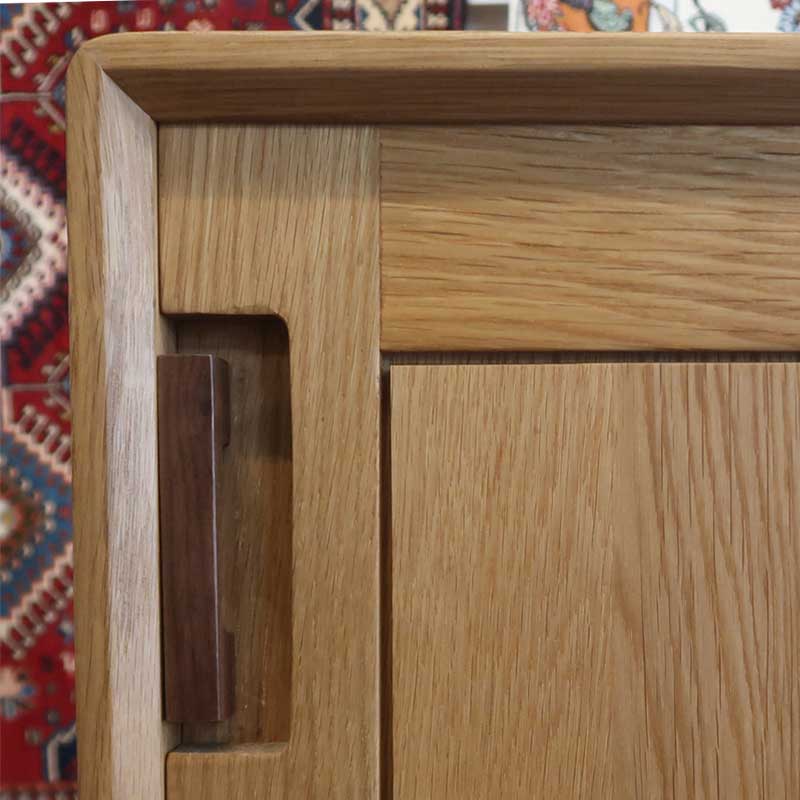 高級感あるウォールナットの取っ手と無垢だからできる強固なほぞ構造