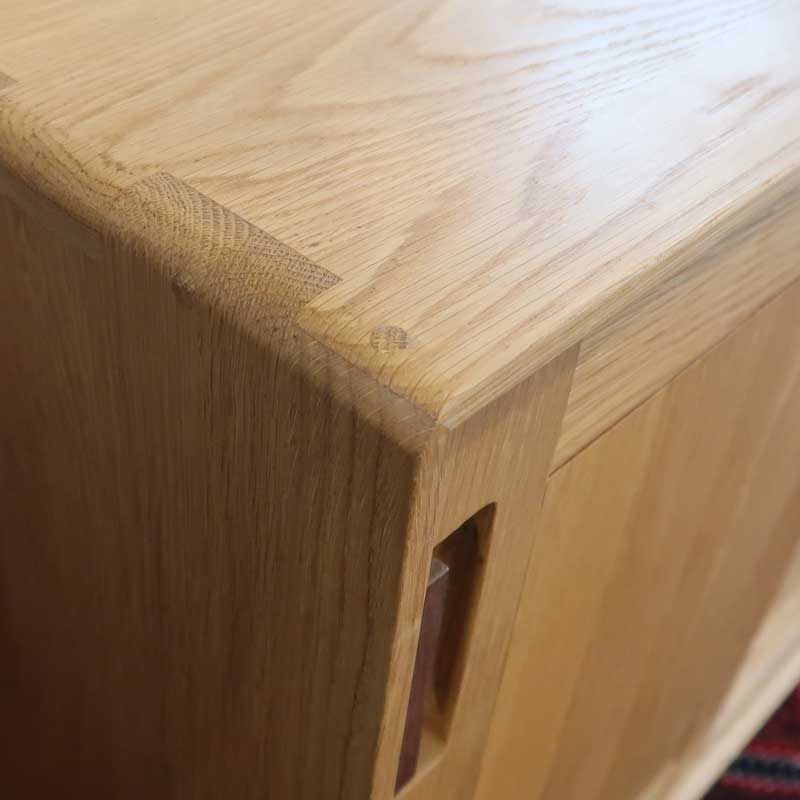 オーク無垢材を天板と側面にも使用し、丈夫なほぞ組構造で製作しています。
