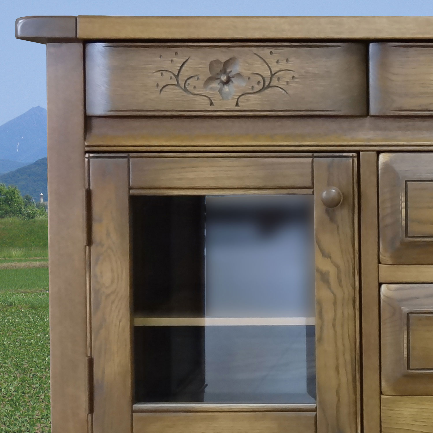 熟練の職人により、一つ一つ真心込めて作られたこのシリーズ家具は、この風合いと木の温もりを感じる家具です。昔ながらの、アンティーク家具に使われるラッカー塗装により、ワイピンングと塗装を繰り返すことで、より色の深みを出しています。これは、とても手間のかかる塗装方法ですが、一生使い続ける家具として、いっさい手抜きをしません。 また、家具の角に無垢材だからできる、かるい名栗(なぐり)加工を施し味わい深い仕上がりとなっております。 アンティーク調に仕上げたこの重厚さは、大人の風合いを漂わせます。北海道の家具とヨーロッパ家具の融合
