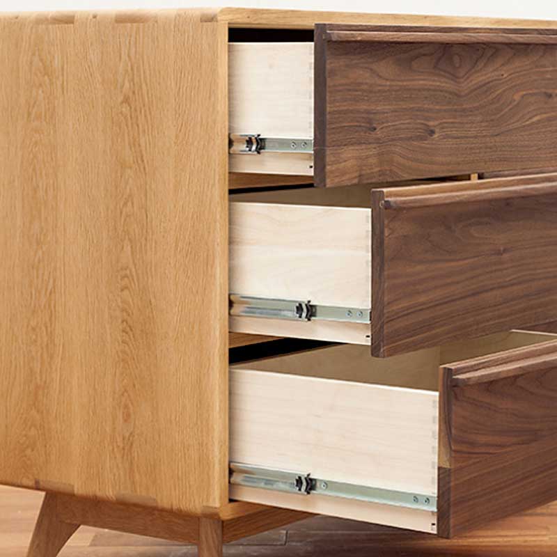国内デザイナーがデザインした前板にウォールナット無垢材、本体にオーク無垢材を使ったコンビネーションがとても素敵な60cm幅チェストです。機能性も充実した逸品です。