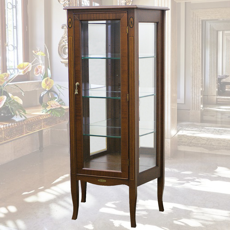 ベネチアの62cm幅猫脚キュリオケースは、象嵌入りのおしゃれで機能的な逆輸入家具です。