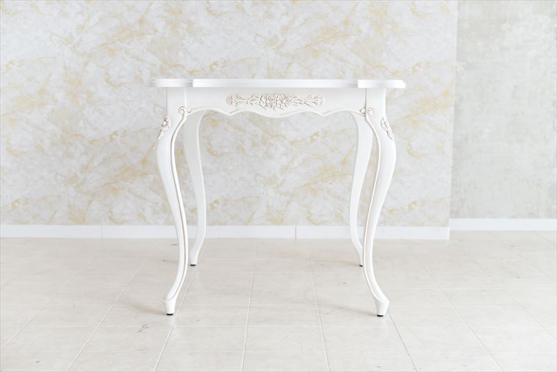 手彫りの彫刻とエレガントな猫脚が魅力の80ダイニングテーブルWHです。