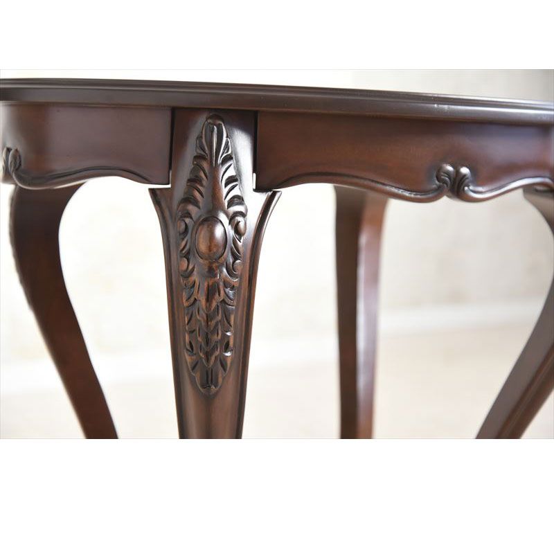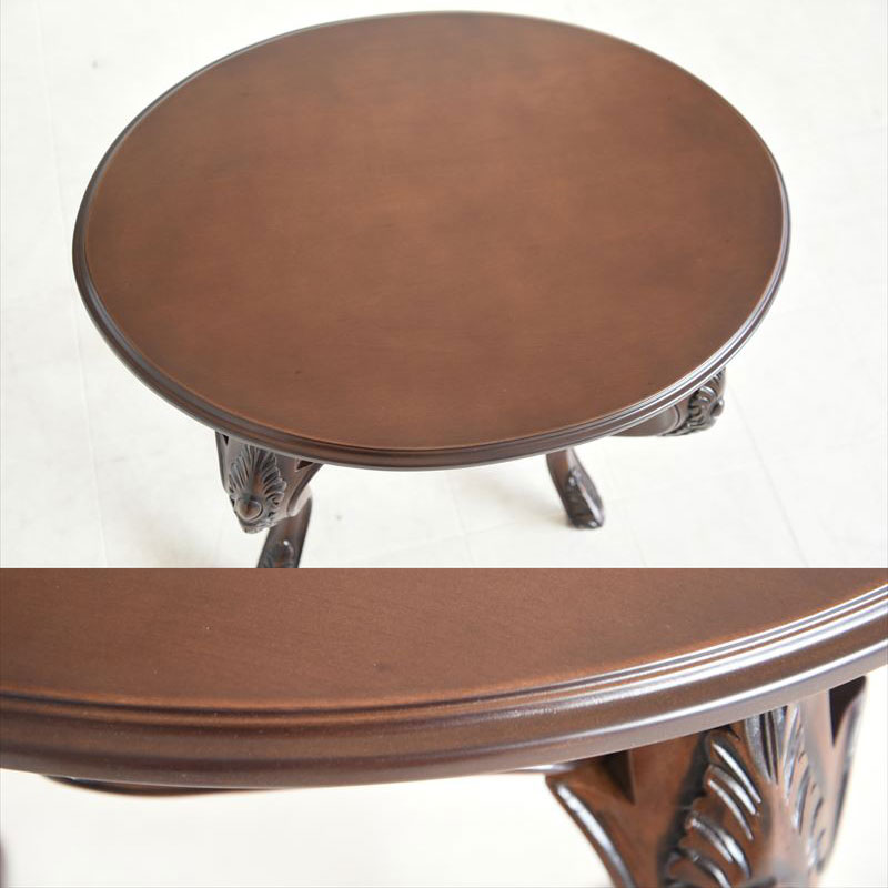 (北海道、沖縄、離島等一部地域を除く) 華やか過ぎず、大人し過ぎず、今にしっとりと溶け込む本物のアンティークエレガント家具。手彫りの彫刻とエレガントな猫脚が魅力の楕円型コーヒーテーブルです。