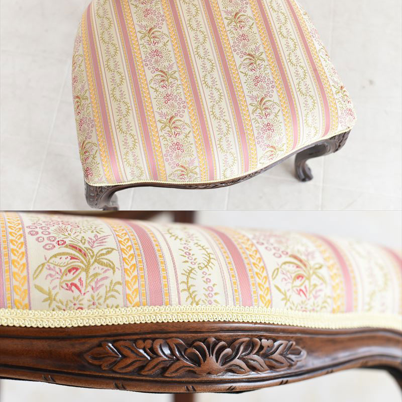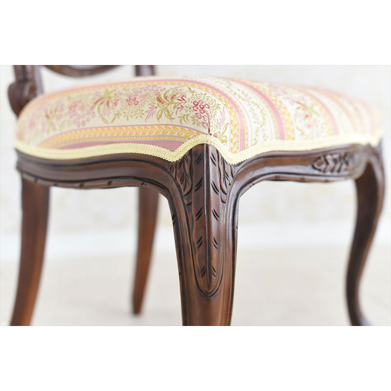 手彫りの彫刻とエレガントな猫脚が魅力のダイニングチェアです。