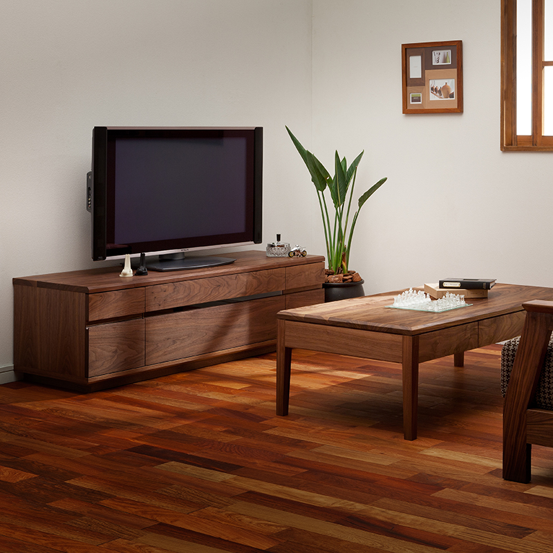 ウォールナット無垢材のきれいな木目を活かした気品のあるテレビボード