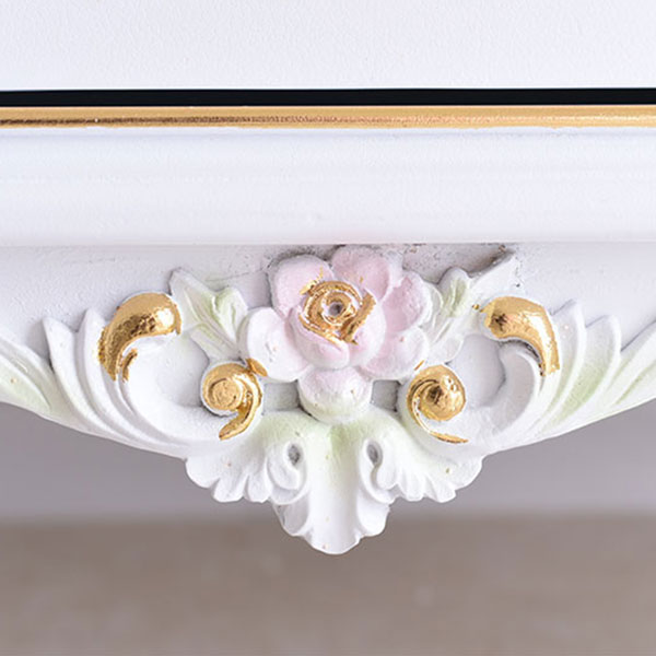 姫家具の定番、ロココ調家具。イタリアで名高い「コルチャゴ」や「シリック」とは比較する事は出来ませんが、お蔭様で、ここ数年コスト面だけでなく品質でも認められる様になりました。更にシリーズ商品のラインナップも豊富になり、サイズも日本仕様に変更しながら新たな商品開発も行っています。