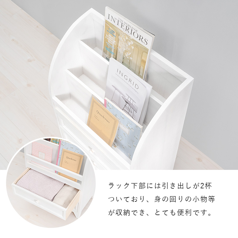 (北海道、沖縄、離島等一部地域除く)(※北海道・沖縄・離島は別途送料お見積します。ご注文前にお問い合わせ下さい。)コストパ最高シャビーホワイトが可愛いシンプルなアンティーク調引出付きマガジンラック。