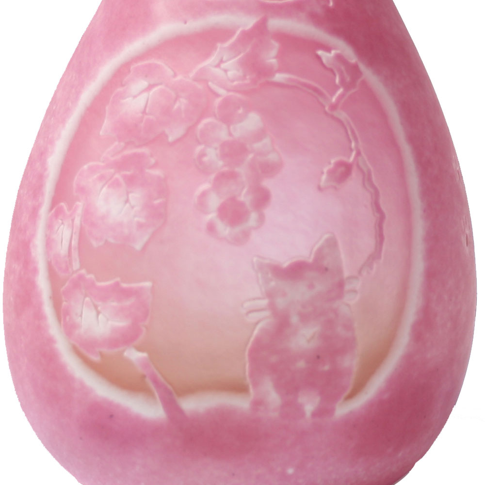 ねこをモチーフにして制作された宙吹きガラスのねこ型ミニランプです。色をピンクに仕上げました。ガラス工芸作家、高城健治・高城美和子の芸術的な作品です。