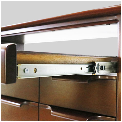 マホガニー材にヴィンテージ感のあるミディアムブラウンのセミマッド塗装を施し、北欧テイストを感じさせ、ブルックリンスタイルにも合わせやすいデザインにしています。