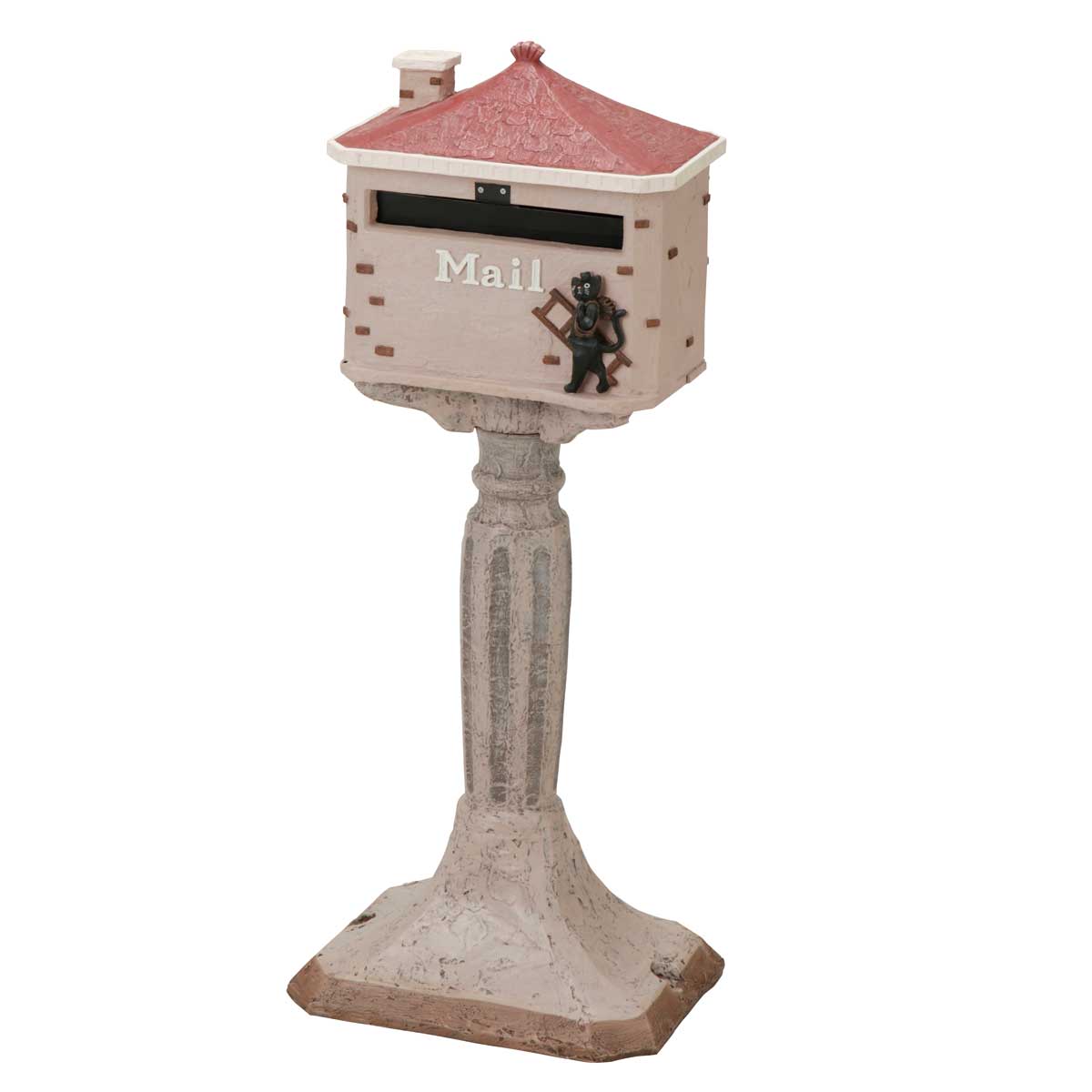 幸せを呼ぶ猫の煙突掃除屋さんをモチーフにした自立型レジン郵便ポスト。