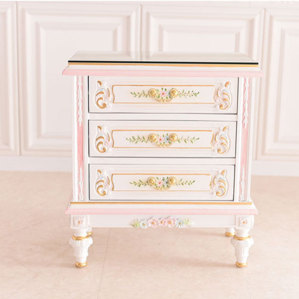 ナイトテーブル(ガラス天板付き) アントワネットシリーズ ロココ調家具