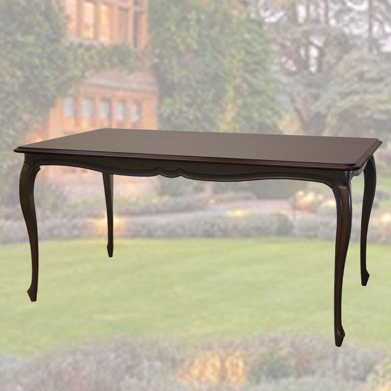 ケントハウスの150cm幅の余裕のサイズの猫脚ダイニングテーブルに猫脚のトラディショナルチェアを4脚セットしました。
