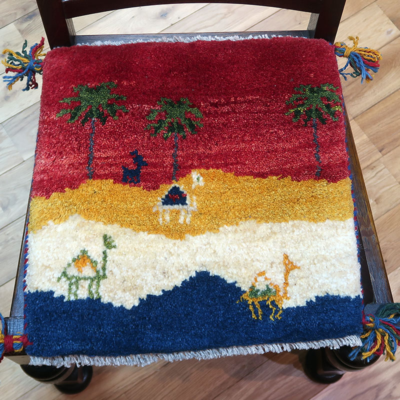 こちらのサイズは、ミニ座布団サイズで、ダイニングチェアや車のシートの上に敷いてお使いいただけるふかふかのギャッベ(ギャベ)絨毯です。