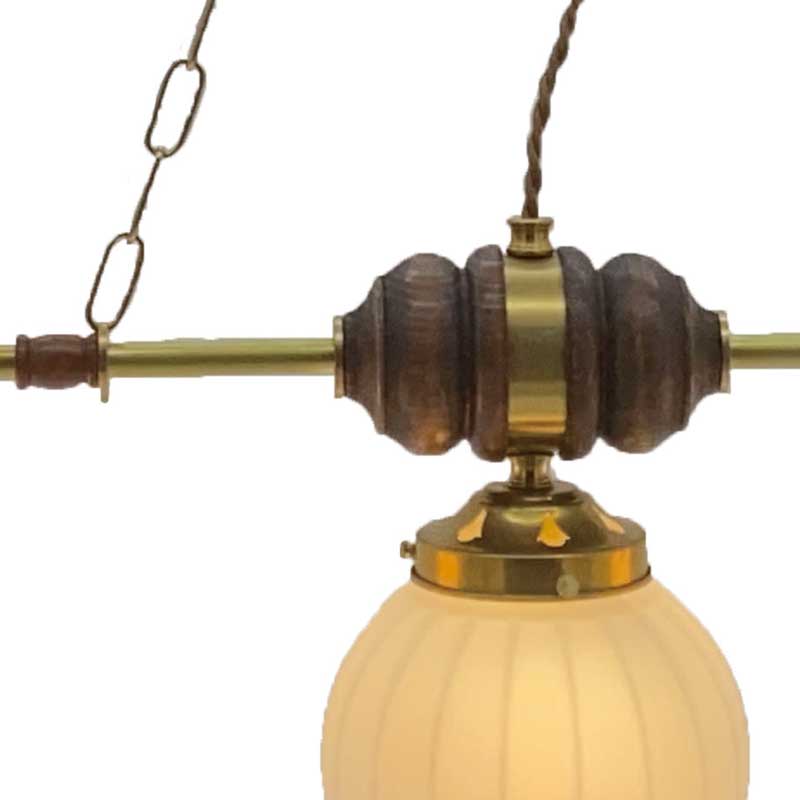 吊り下げ型のかわいいボール型のシェードが3灯並んだシーリングランプ。各パーツを海外にて生産し国内にて、組み立て配線しています。