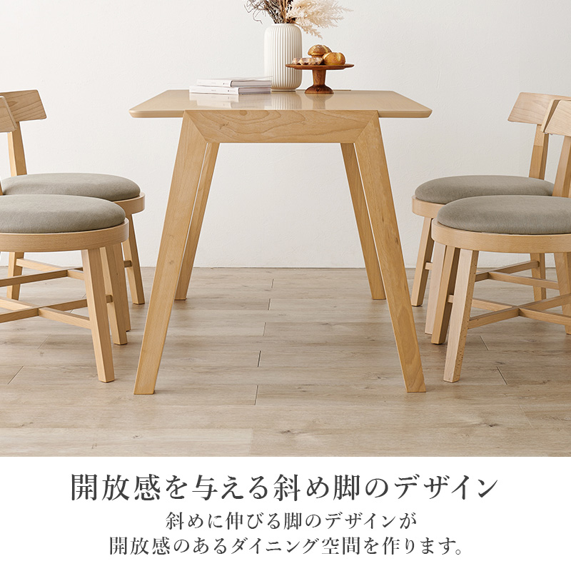 天然木を贅沢に使用したダイニング5点セット。チェアの丸みを帯びた愛らしいシルエットが空間を柔らかに演出します。