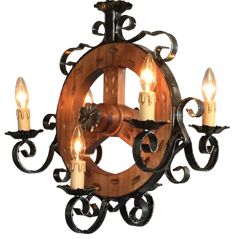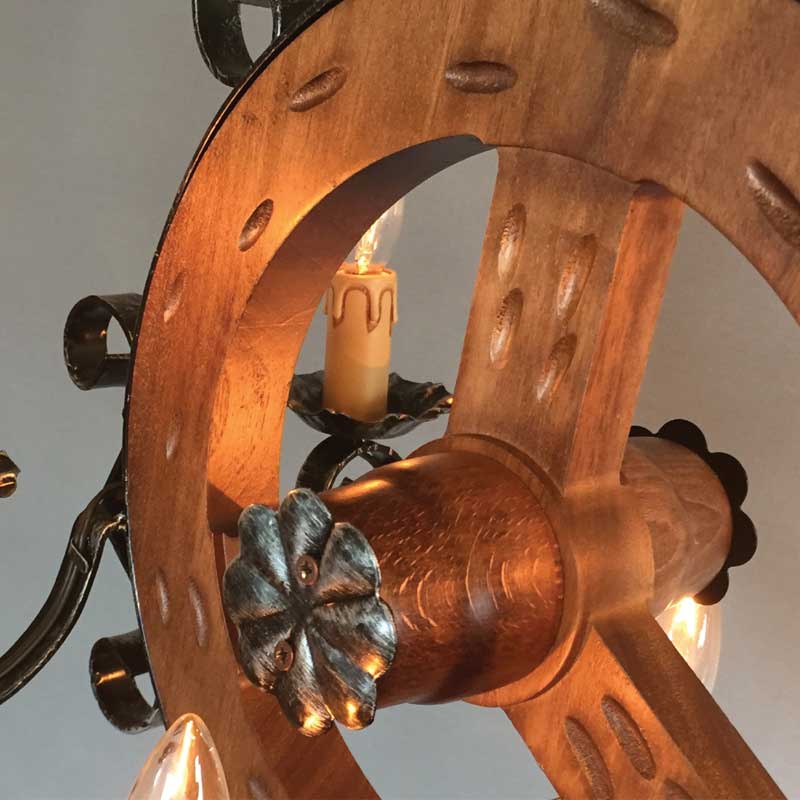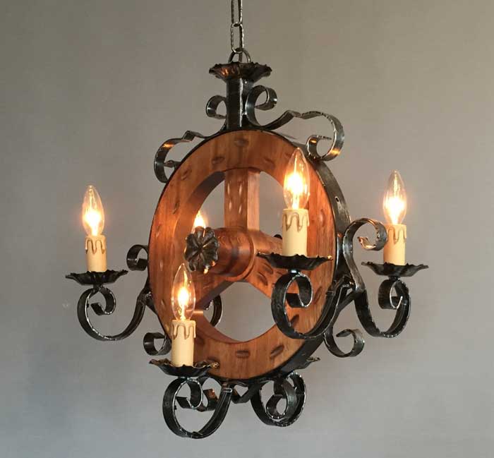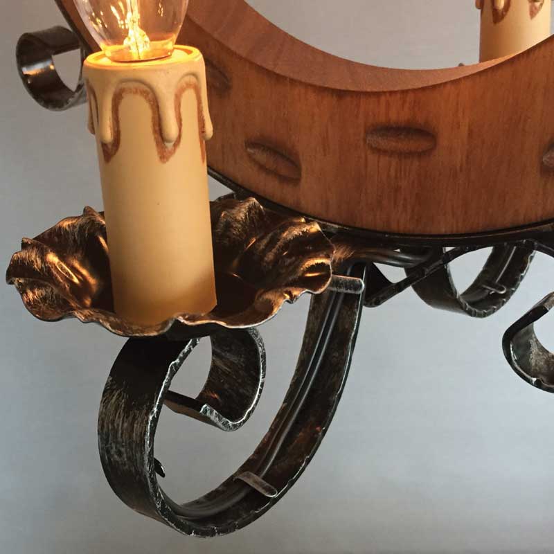 船をイメージさせる木を中心に据えた6灯シャンデリア。アイアンワークが最も特徴的なイタリアのシャンデリア照明です。