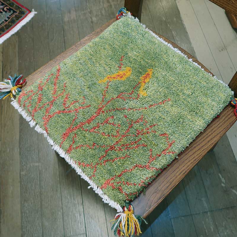 ペルシャ絨毯の中でも毛足が長いギャッペ(ギャベ)AB-AJ29486。こちらのサイズは、ミニ座布団サイズで、ダイニングチェアや車のシートの上に敷いてお使いいただけるふかふかのギャッペ(ギャベ)絨毯です。店長コメント