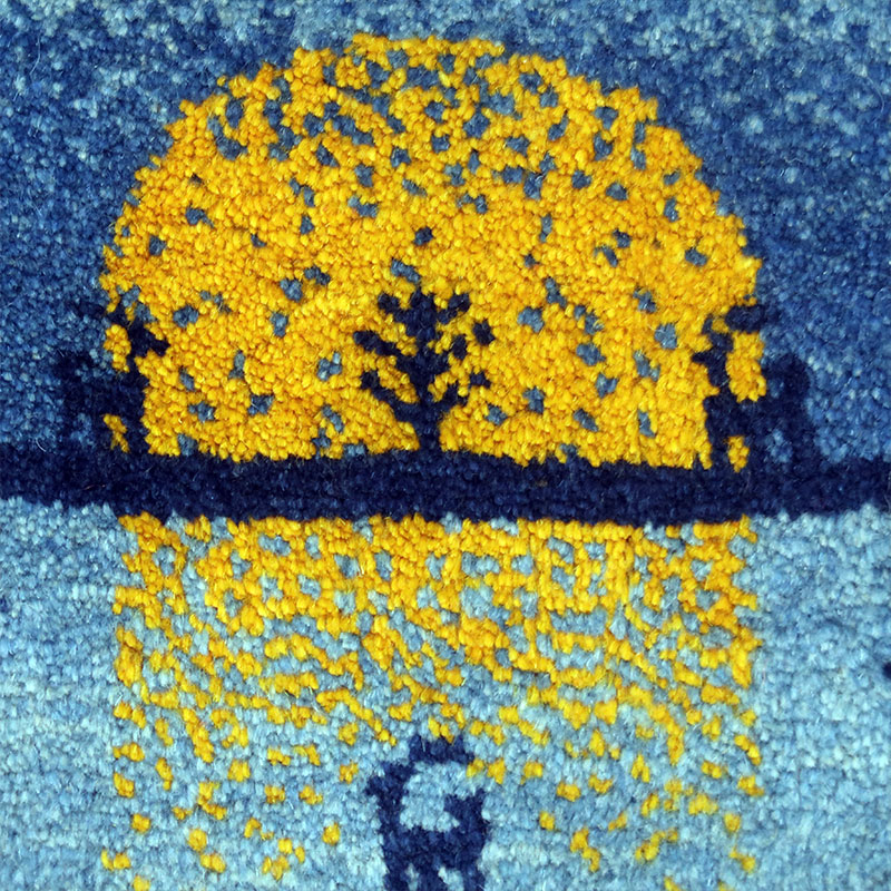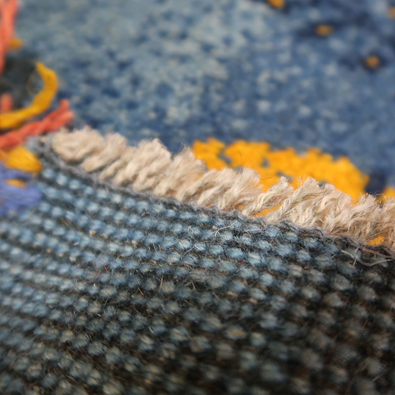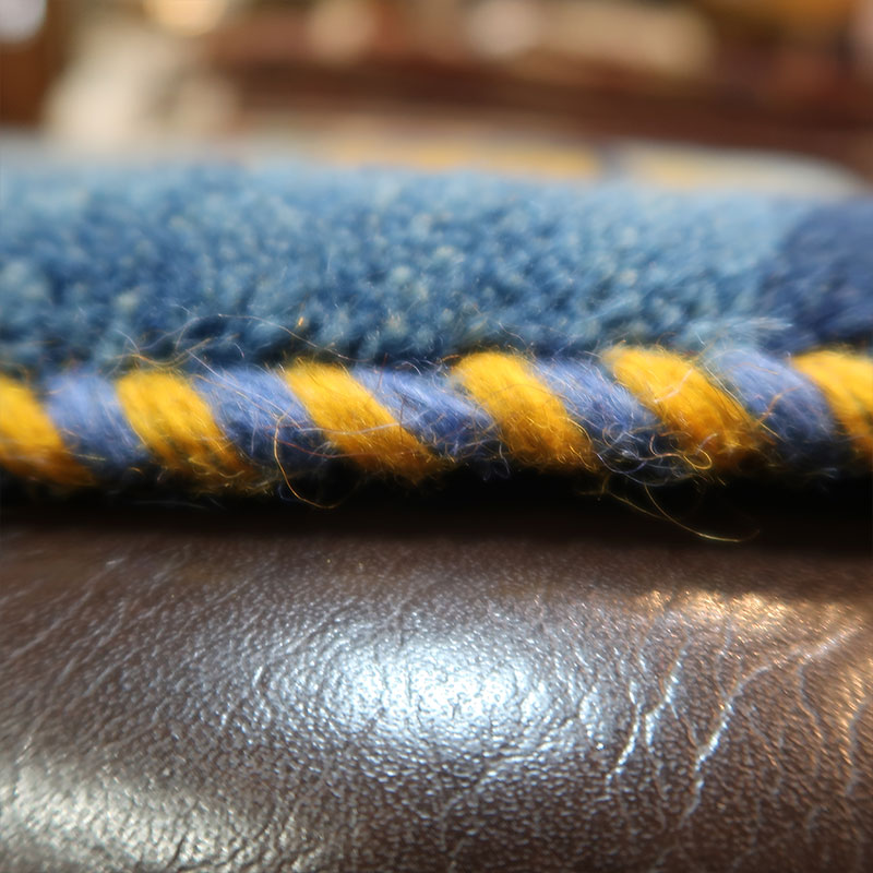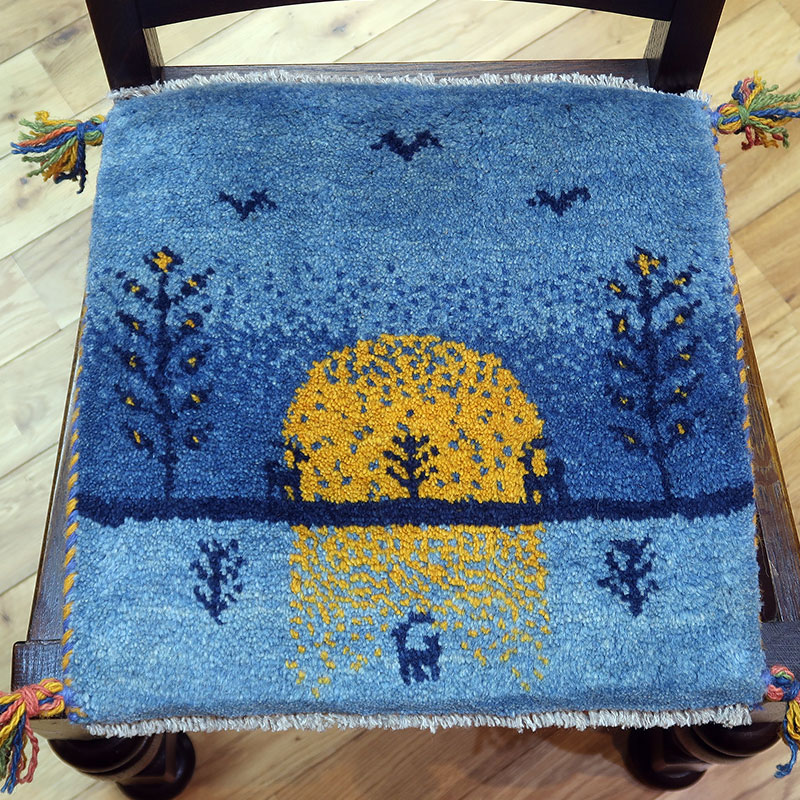 ペルシャ絨毯の中でも毛足が長いギャッベ(ギャベ)AB-AJ27969。こちらのサイズは、ミニ座布団サイズで、ダイニングチェアや車のシートの上に敷いてお使いいただけるふかふかのギャッベ(ギャベ)絨毯です。